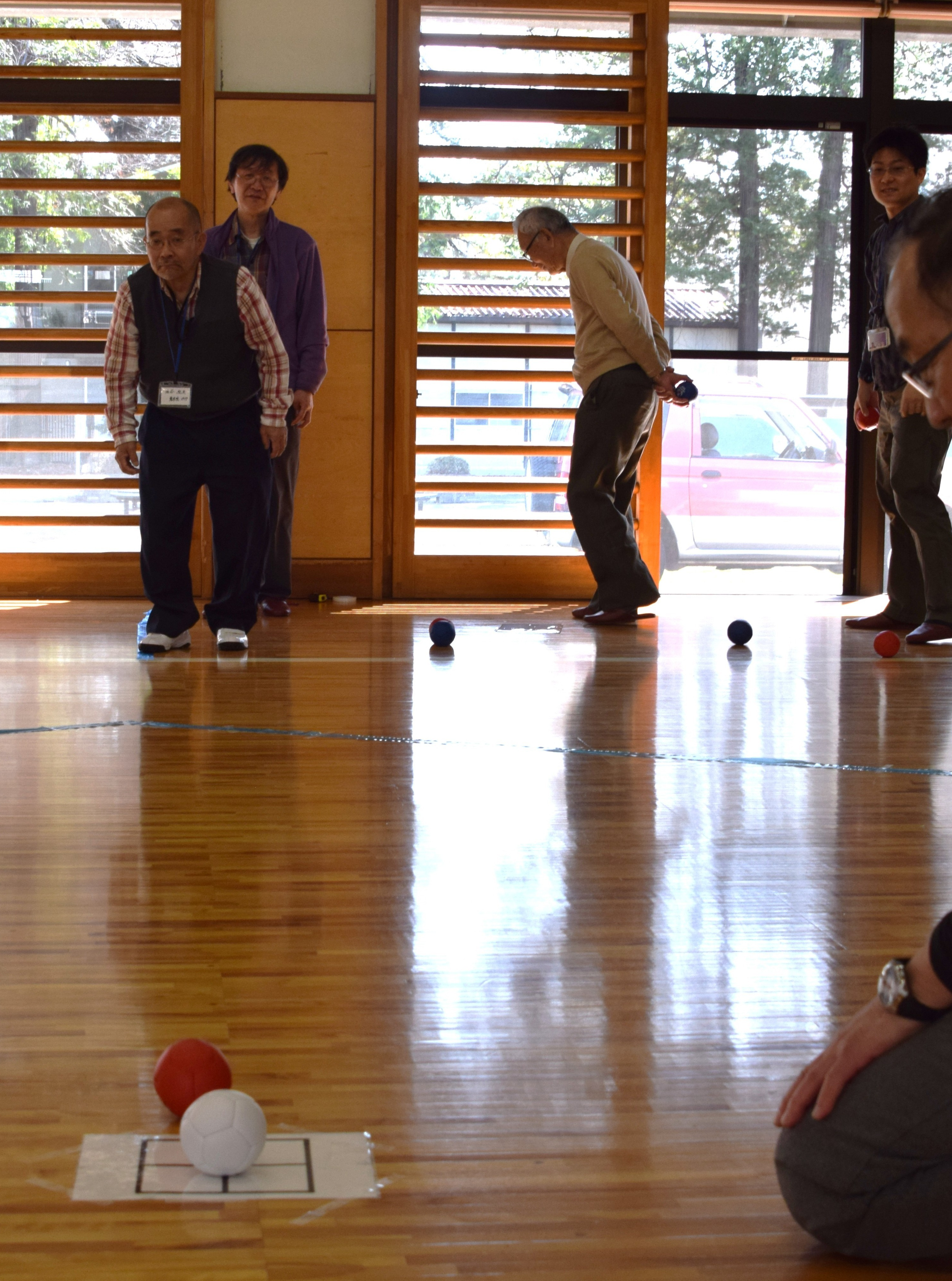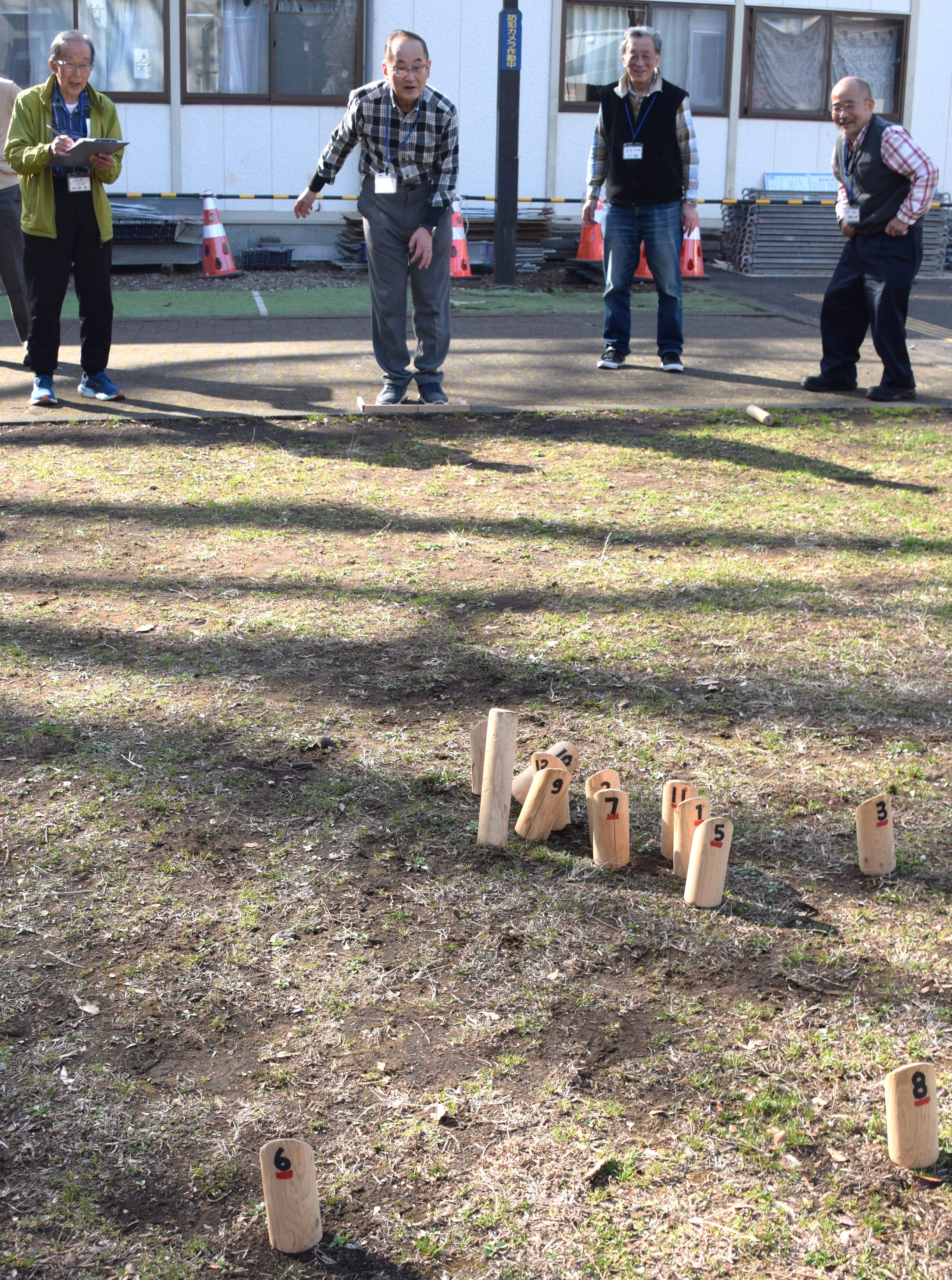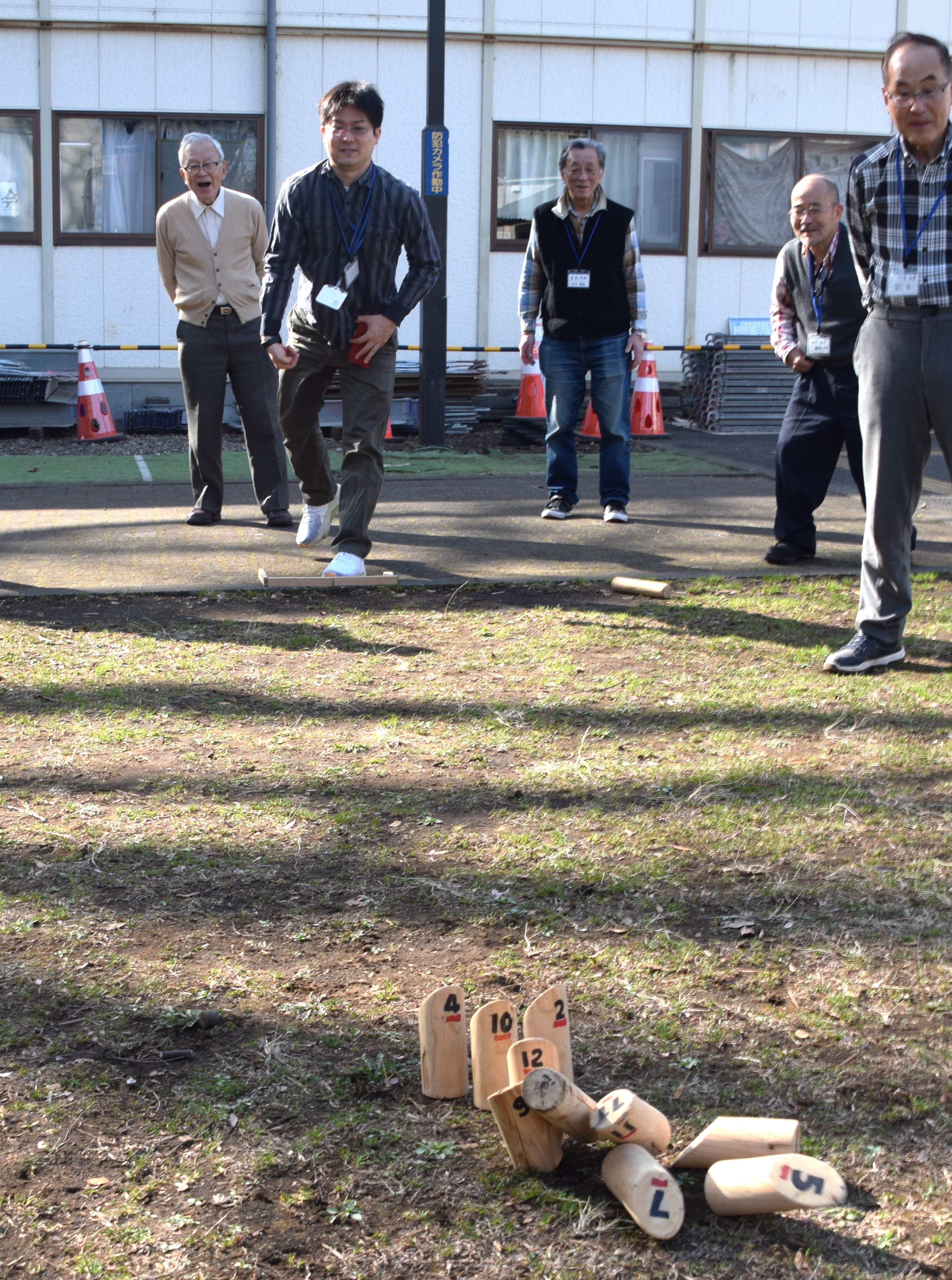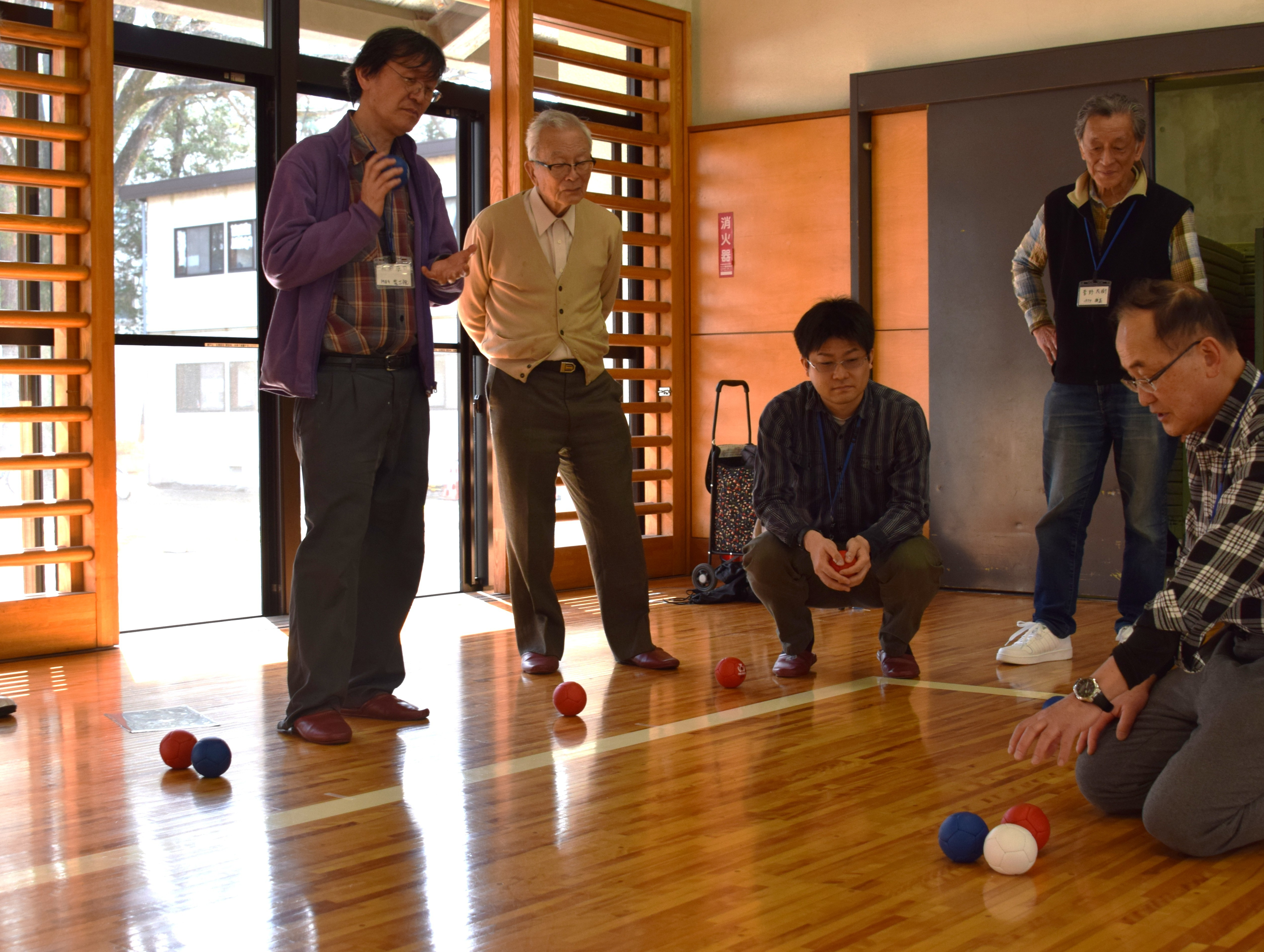 - 春のような陽気になった3月1日、府中キャンパスの武道場とその前庭でボッチャとモルックを楽しむ東京都支部のイベントを開いた。30代から80代までの8人が集まりゲームを楽しんだ。